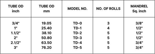 THESE EXPANDERS ARE DESIGNED WITH 4/5 ROLLERS AND ARE PROVIDED WITH THRUST BEARING TO PREVENT DISTORTION OF TUBE ENDS AND FOR SMOOTH EXPANSION OF THIN GAUGE STAINLESS STEEL TUBES AND BENDS.
